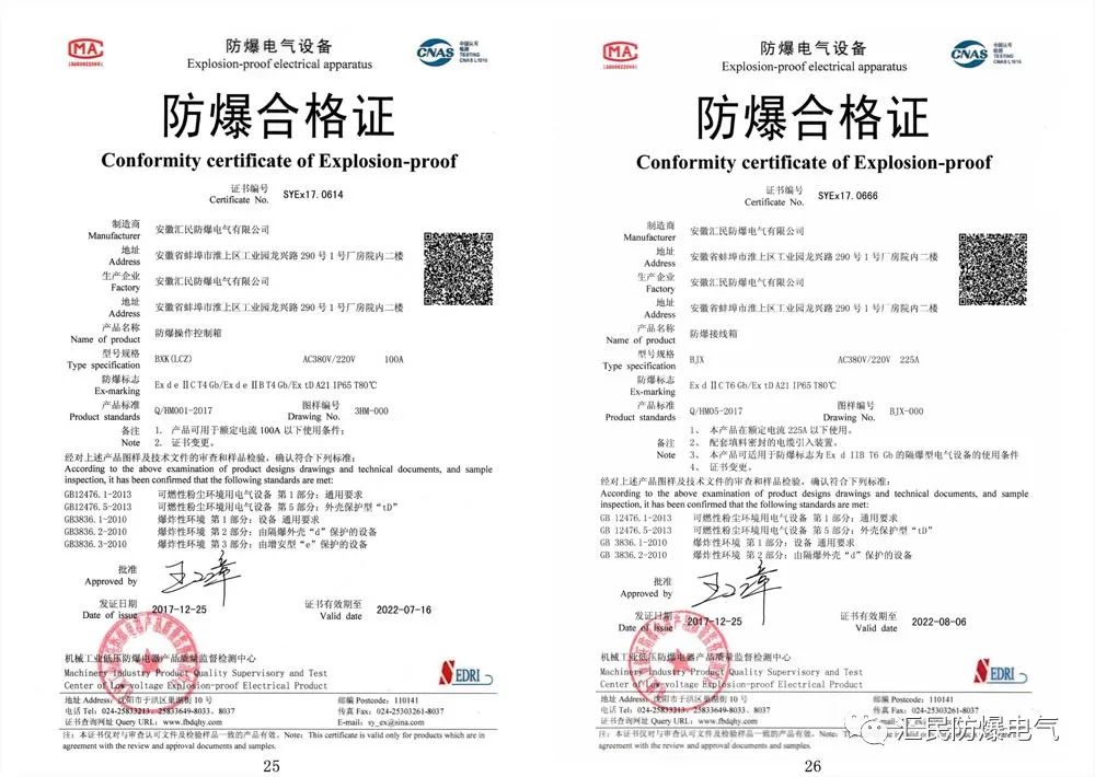 防爆合格證,3C強制產品認證證書,ISO9001質量管理體系認證證書。