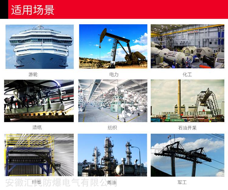 產品內部可配(總開關)塑殼斷路器、小型斷路器(具有過載及短路保護功能)、交流接觸器、熱繼電器、信號燈、按鈕、開關,裝施耐德,正泰,德力西,ABB等元件,防爆性能及電氣性能可靠。